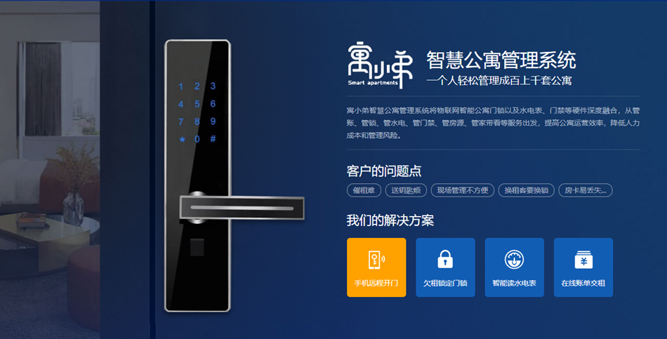 以上就是【 寓小弟智慧公寓管理系統(tǒng),智能公寓管家】http://m.zzxgsc.com/xwzx/cjwt/307.html的相關(guān)內(nèi)容, 文本由寓小弟智能鎖整理發(fā)布,如需轉(zhuǎn)載,請(qǐng)帶上本站鏈接。
